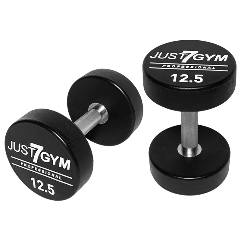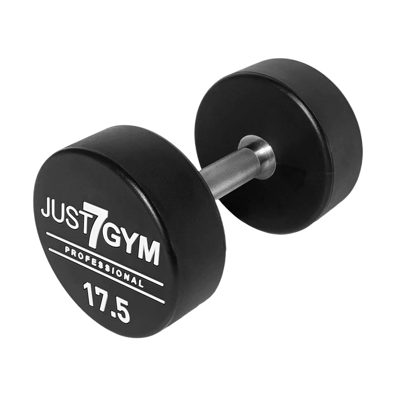 Profesjonalny zestaw hantli poliuretanowych Just7Gym (12,5 – 35 kg) to sprzęt stworzony z myślą o intensywnym użytkowaniu w siłowniach komercyjnych, klubach fitness oraz studiach treningowych. Dzięki zastosowaniu wysokiej jakości poliuretanu – stosowanego w sprzęcie klasy premium, hantle wyróżniają się wyjątkową odpornością na uderzenia, ścieranie oraz uszkodzenia mechaniczne, zachowując estetyczny wygląd przez długi czas.