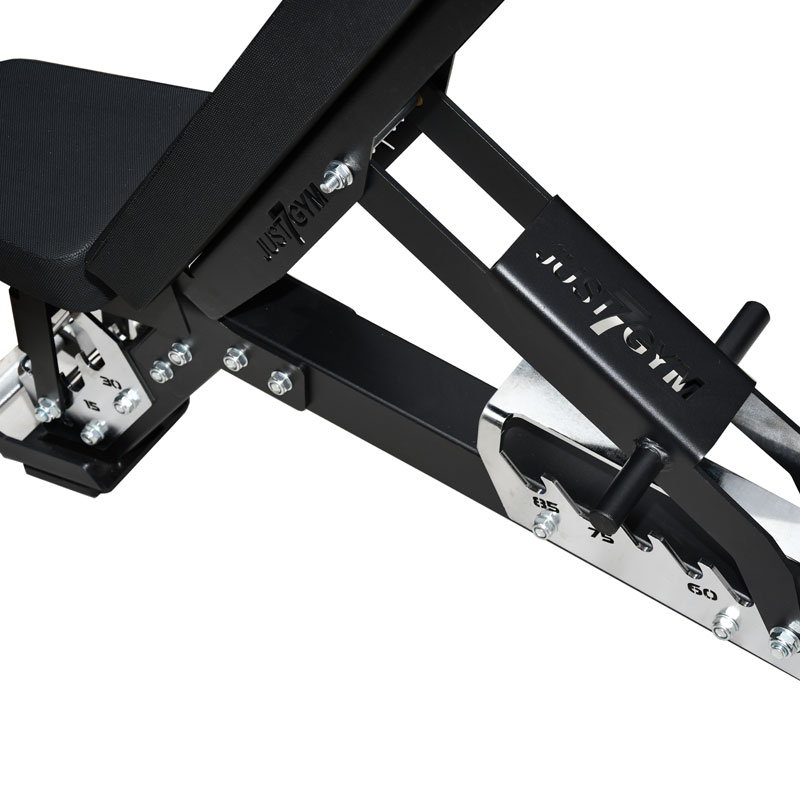 Wytrzymała i funkcjonalna ławka regulowana Just7gym 3.0 to idealne rozwiązanie zarówno do domowej siłowni, jak i profesjonalnego klubu fitness. Wykonana z solidnej stali i zabezpieczona trwałą powłoką malowaną proszkowo, zapewnia stabilność i bezpieczeństwo podczas każdego treningu.