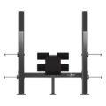 Praktyczne uchwyty na sztangę umieszczone na odpowiedniej wysokości dla bezpiecznego odkładania ciężaru.