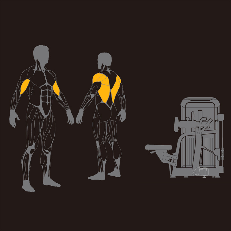 Maszyna Seated Back Row Just7Gym Professional została stworzona z myślą o efektywnym treningu górnej i środkowej części pleców, ze szczególnym uwzględnieniem najszerszych mięśni grzbietu. Dodatkowo angażuje mięśnie czworoboczne, równoległoboczne, tylne części mięśni naramiennych oraz bicepsy i przedramiona. Urządzenie zapewnia płynny i stabilny ruch, ograniczając jednocześnie nadmierne obciążenie stawów, co pozwala skupić się na prawidłowej technice ćwiczeń — dzięki temu trening jest skuteczny, a sprzęt trwały.