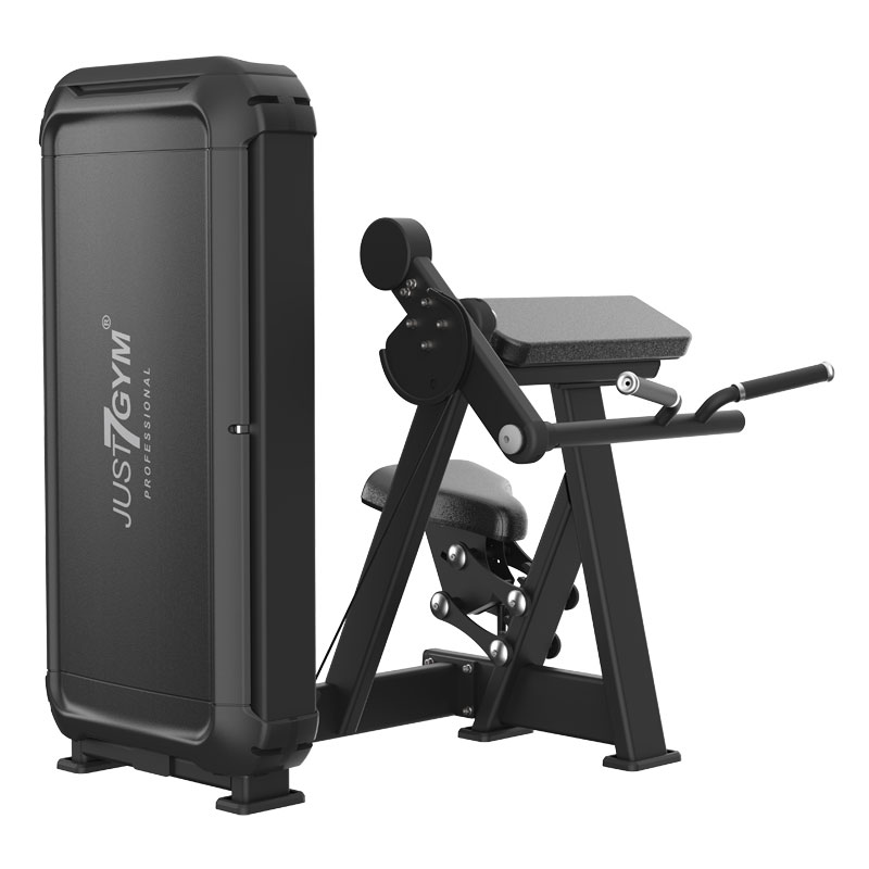 Maszyna Seated Bicep Curl Just7Gym Professional została zaprojektowana z myślą o wzmacnianiu mięśni ramion, ze szczególnym uwzględnieniem bicepsów. Gwarantuje skuteczny i bezpieczny trening. Tapicerka wykonana ze ekoskóry gwarantuje komfort nawet podczas długotrwałych treningów. Uchwyty pokryte gumową warstwą chronią dłonie i zapewniają stabilny, bezpieczny chwyt. Urządzenie wyposażone jest w regulowane siedzisko, które można dostosować do indywidualnych preferencji użytkownika. Maszyna została wykonana z wysokiej klasy materiałów, co gwarantuje jej trwałość i niezawodność. Linka wyciągu pokryta trwałym, odpornym na ścieranie splotem.