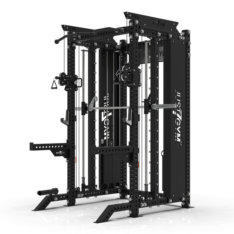 Wbudowana suwnica Smitha to profesjonalne rozwiązanie, które umożliwia bezpieczne i kontrolowane wykonywanie ćwiczeń ze sztangą. Konstrukcja suwnicy prowadzi sztangę po szynach, co minimalizuje ryzyko kontuzji i pozwala na precyzyjne wykonywanie ruchu nawet bez asekuranta. Idealna do wyciskania, przysiadów oraz wielu innych ćwiczeń siłowych.