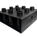 Posiada 9 specjalnie zaprojektowanych otworów, wyposażonych w kołnierze z tworzywa, które zabezpieczają gryfy przed zarysowaniami. Kompaktowa konstrukcja o wymiarach podstawy 45×45 cm oraz wysokości 20 cm pozwala na wygodne ustawienie stojaka nawet w ograniczonej przestrzeni.