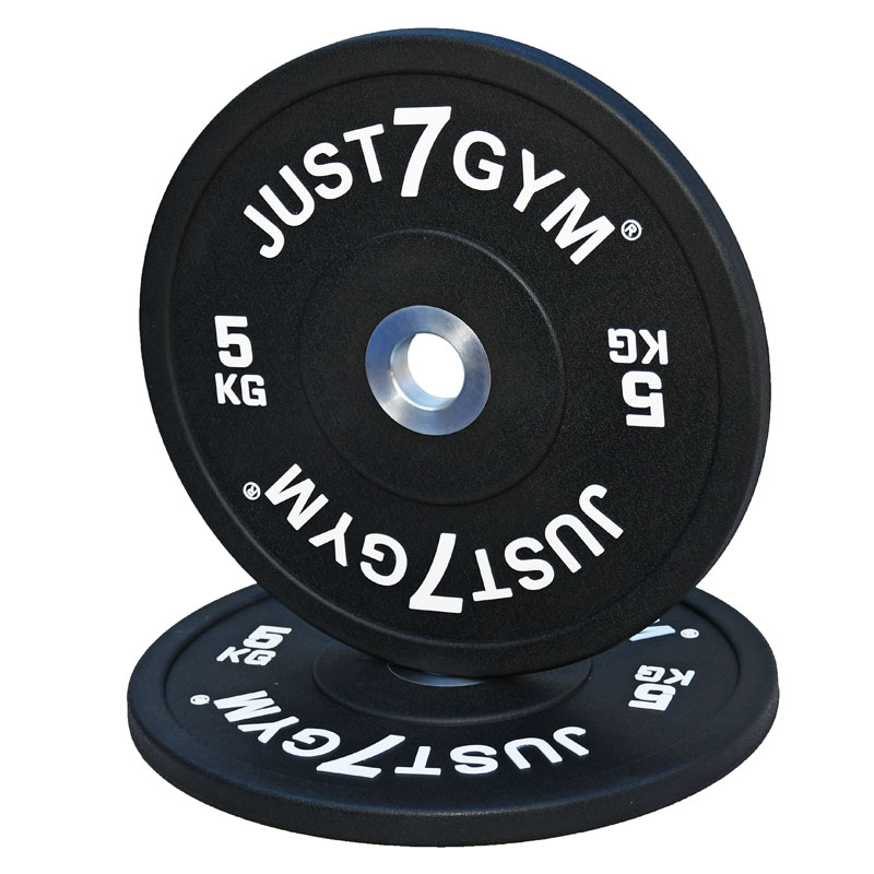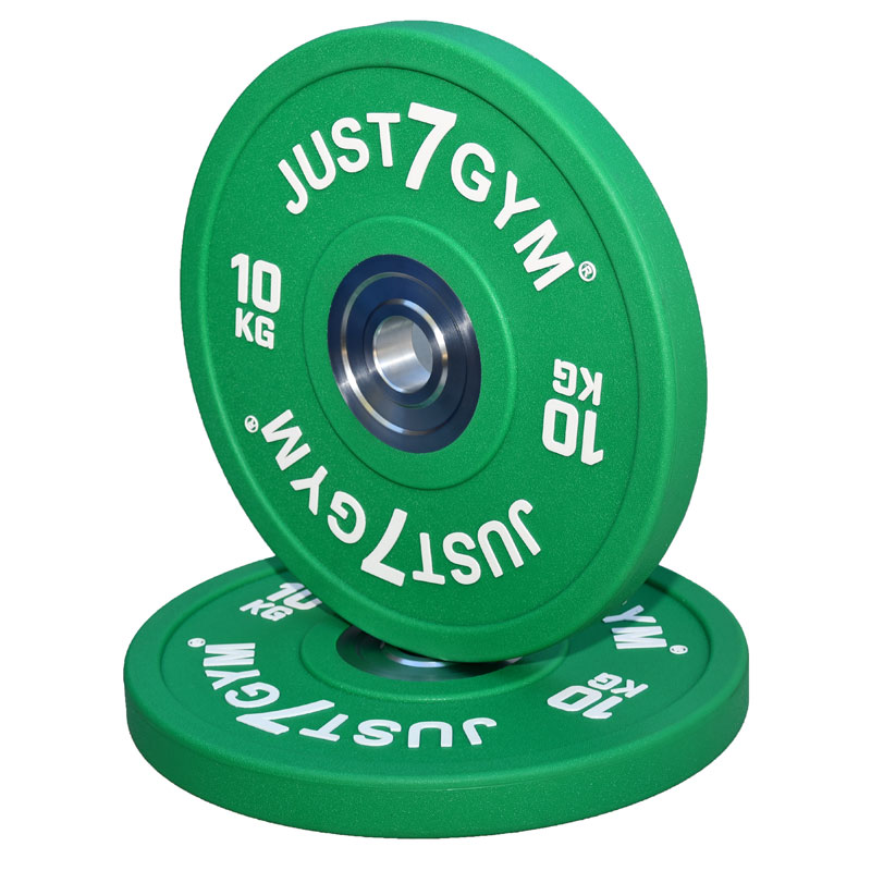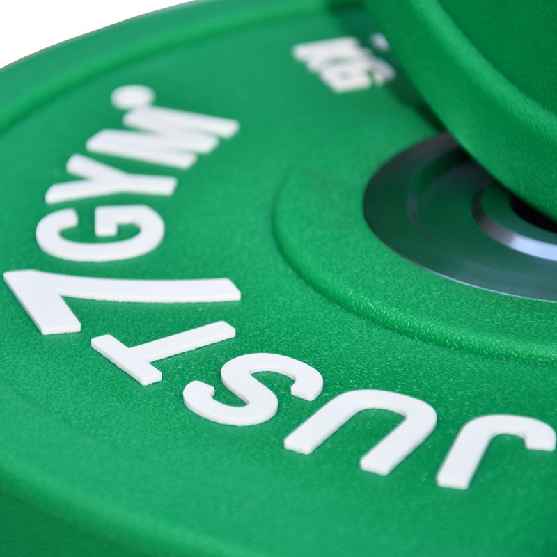 Jednolita średnica talerzy – 45 cm – zapewnia komfortowy i bezpieczny trening zarówno przy martwym ciągu, jak i przy podnoszeniu ciężarów nad głowę. Każdy talerz posiada wypukłe logo Just7Gym, które podkreśla profesjonalny charakter sprzętu.